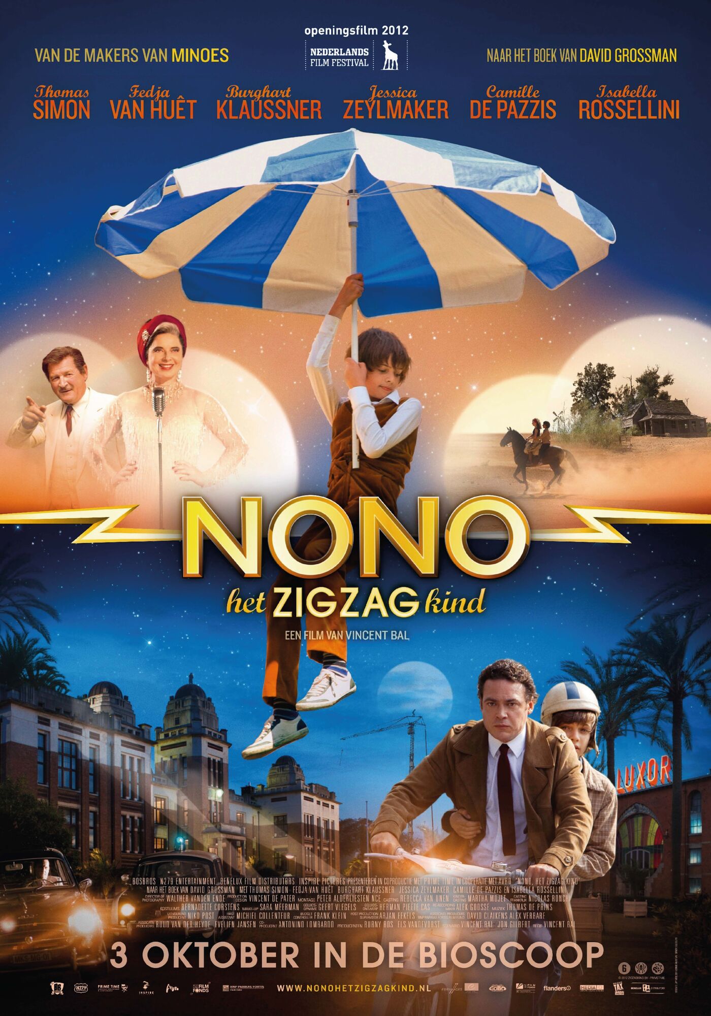 Nono, het zigzagkind, dat stilistisch aan de jaren vijftig en zestig doet denken, is de zoveelste kwaliteitsfilm van producent Burny Bos. De Vlaamse regisseur Vincent Bal, die elf jaar geleden sprankelend debuteerde met Minoes, legt de lat weer hoog. Hij is een man van details, zodat alles klopt in deze film waarin vier talen worden gesproken. De zoektocht naar de eigen identiteit werd nog nooit zo spannend in beeld gebracht, een echte James Bond (met inhoud) op maat van een jong publiek! Naar het bekroonde boek van David Grossman, een van Israëls meest bekende schrijvers.