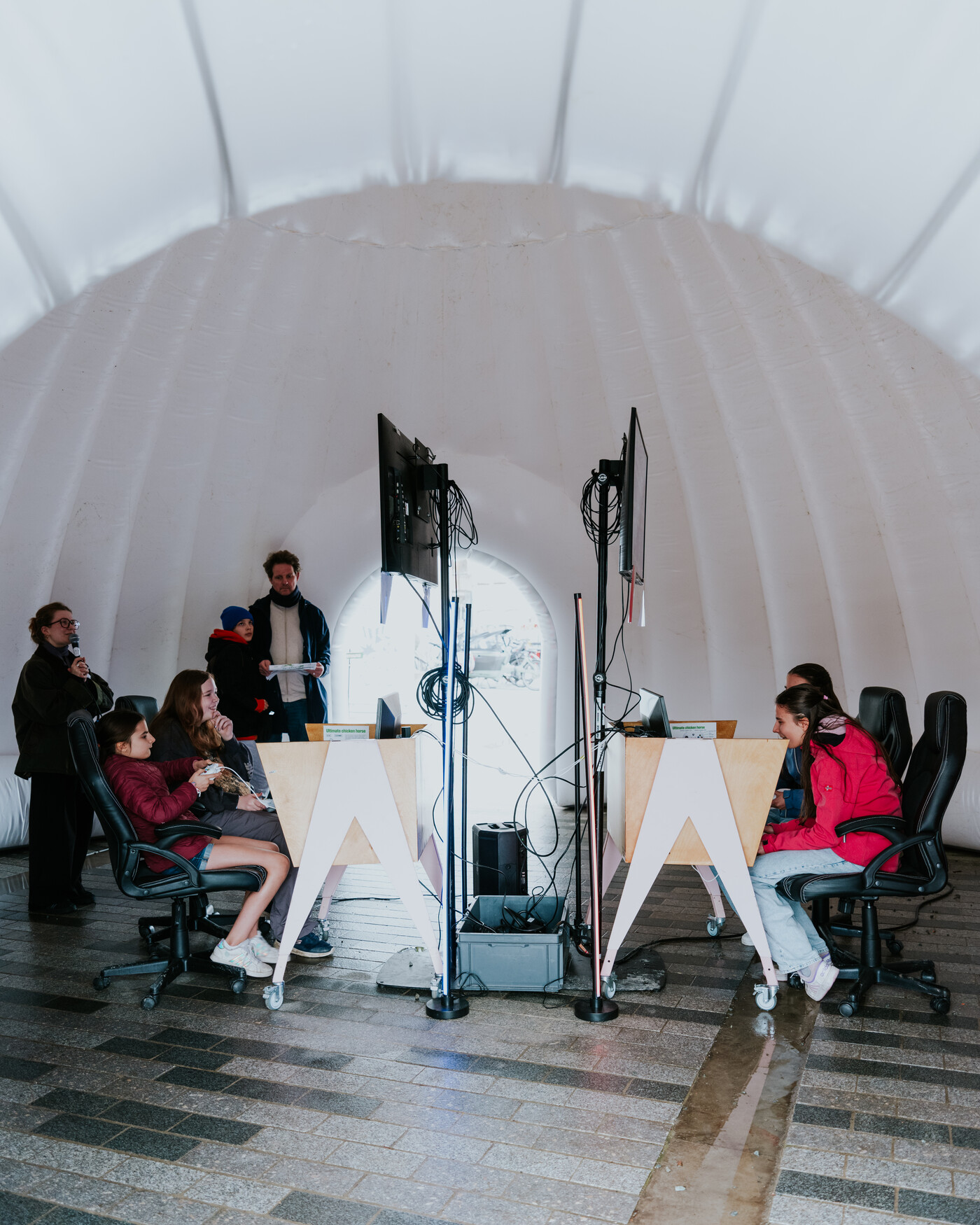 In de game arena nemen spelers het, als een echte atleet op tegen andere gamers — met een publiek dat meeleeft alsof het een sportwedstrijd is. Perfect voor festivals, opendeurdagen en meer.