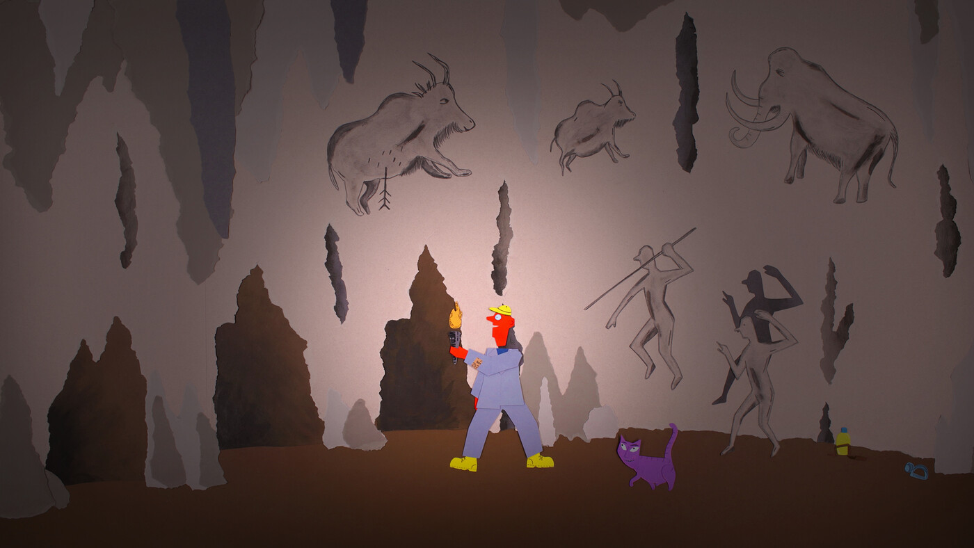 Tijdens een wandeling ontdekt Meneer Papier een grot. Wat zou daar binnenin te zien zijn?