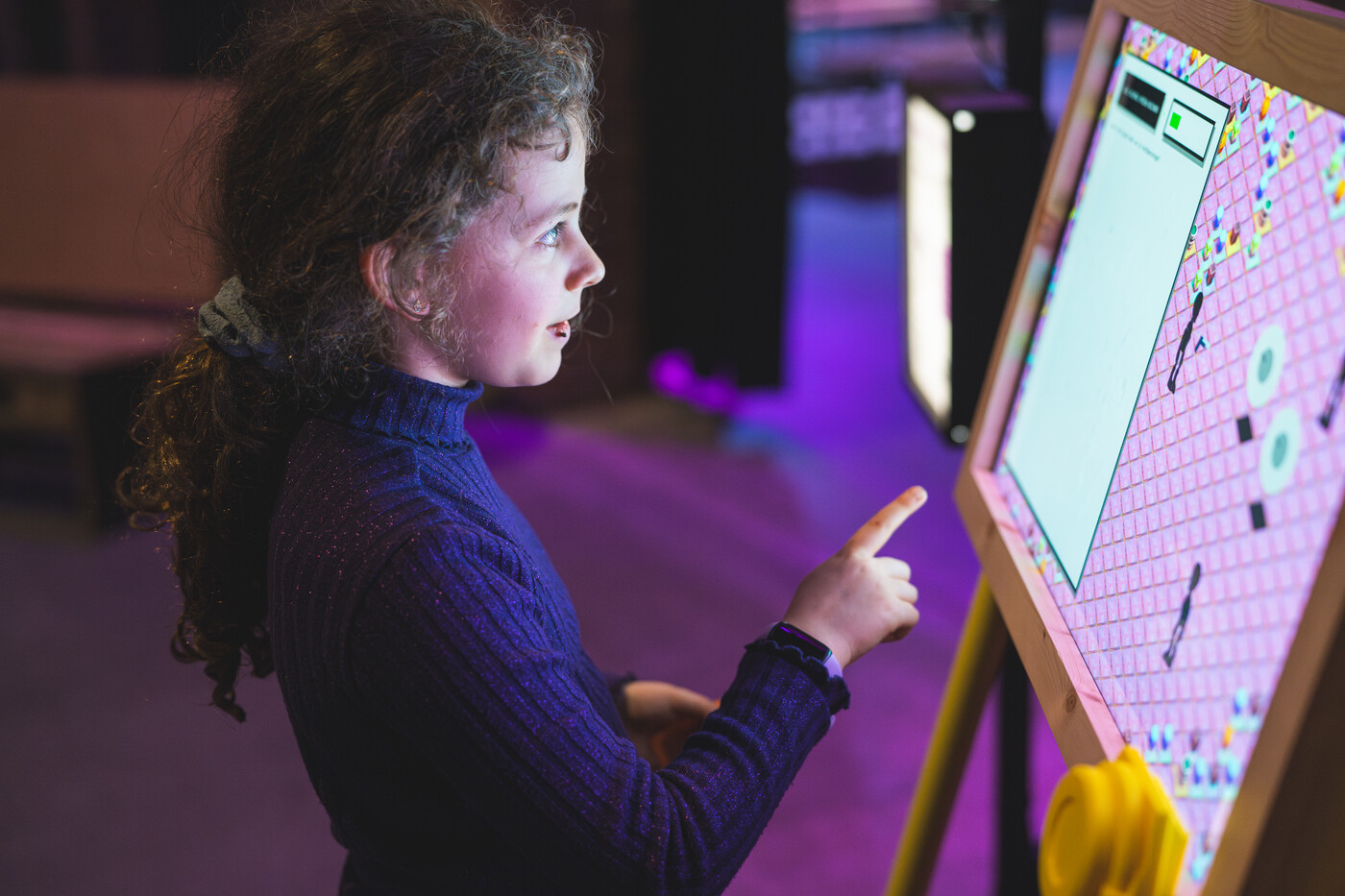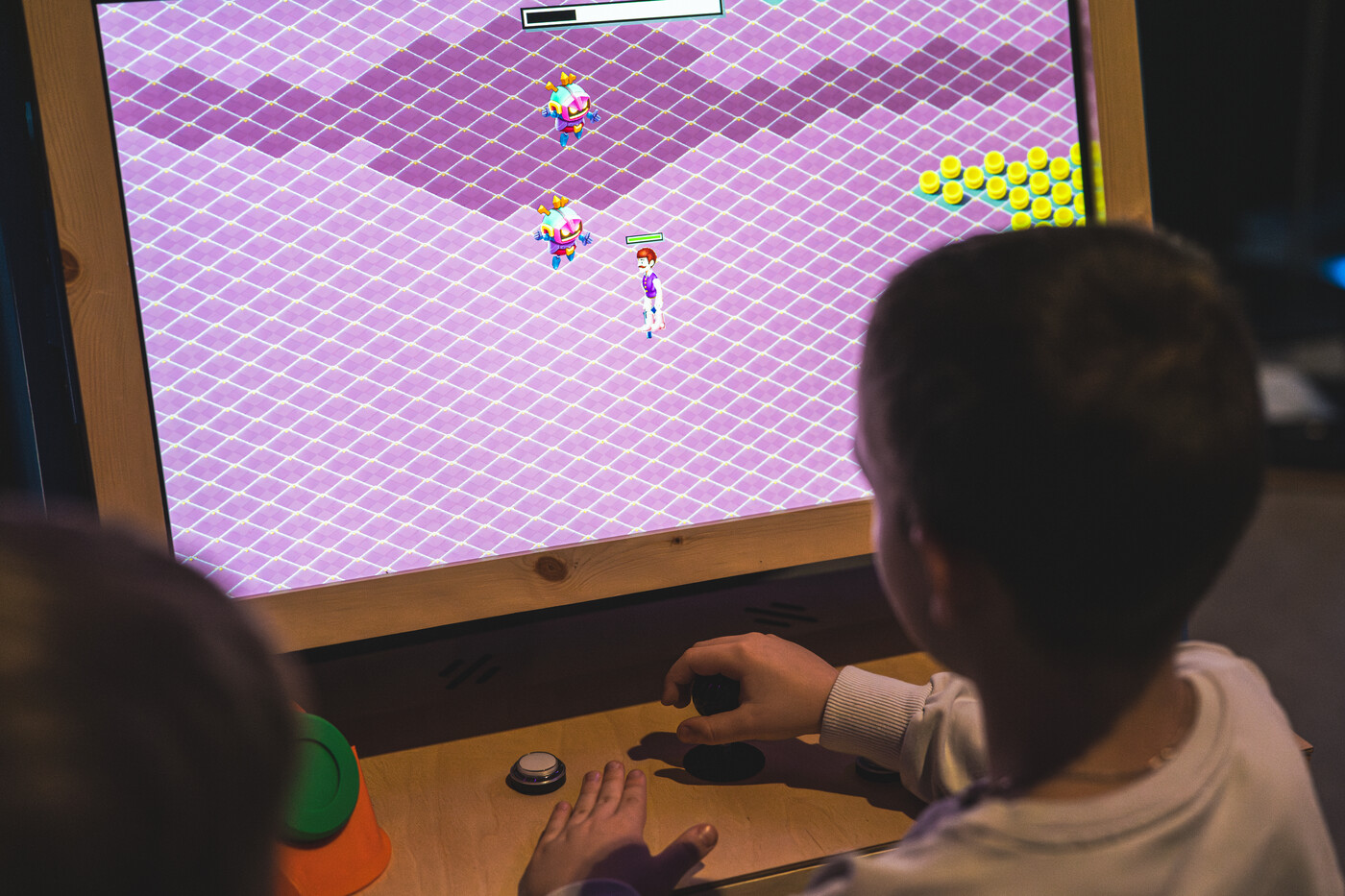 Creëer en speel je eigen game, met behulp van artificiële intelligentie. De AI is je creatieve assistent en helpt je snel ideeën te bedenken en uit te voeren. Jij blijft de bedenker! Eerst ontwikkel je jouw eigen platformspel. Via tekstuele keuzes ontwerp je de personages, het verhaal en de omgeving. De AI zet jouw keuzes om in een speelbare game. Daarna kun je jouw zelfgemaakte game spelen. De begeleider toont je graag hoe AI jou heeft geholpen bij het creatieve proces. Deze installatie is gemaakt door CTRL + ALT, JEF & Arts&Publics, met steun van de Vlaamse en Waalse gemeenschap. De artificiële intelligentie van deze installatie werkt lokaal op de computer. Deze heeft dus geen internet nodig en is daarom minder belastend voor het milieu.