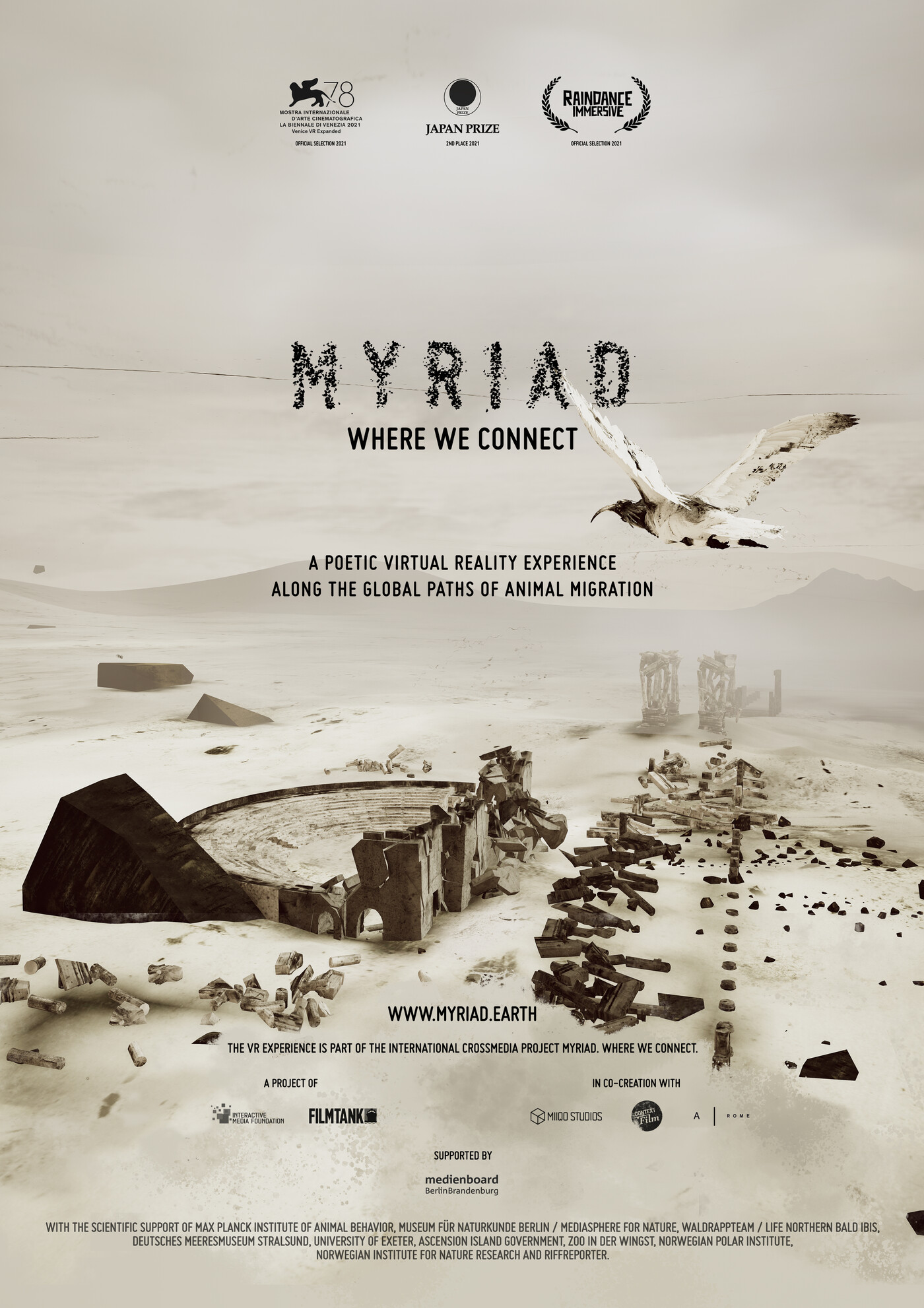 Met virtual reality lijkt het alsof je in een andere werkelijkheid bent beland. Ontmoet de kale ibis, de poolvos en de zeeschildpad op hun reizen in deze drie VR-films. Ze migreren langs wind- en zeestromingen, over continenten en door torenhoge bergketens terwijl ze hun weg over de wereld vinden. Een poëtische reis, tot leven gebracht met houtskooltekeningen in de digitale VR-omgeving. Met deze installatie nemen we 5 VR-brillen mee. Kinderen vanaf 9 jaar en hun ouders kiezen één van de drie dieren en dompelen zich +/- 10 minuten onder in hun verhaal.. Op die manier kunnen er per uur tot 25 kinderen genieten van deze poëtische ervaring. Deze VR-film is deel van het project ‘MYRIAD. Where we connect.’ van Interactive Media Foundation en Filmtank,in co-creatie met Miiqo Studios en Artificial Rome, met wetenschappelijke ondersteuning van o.a. Museum für Naturkunde Berlin. www.myriad.earth Taal: Engels gesproken, Nederlands ondertiteld.